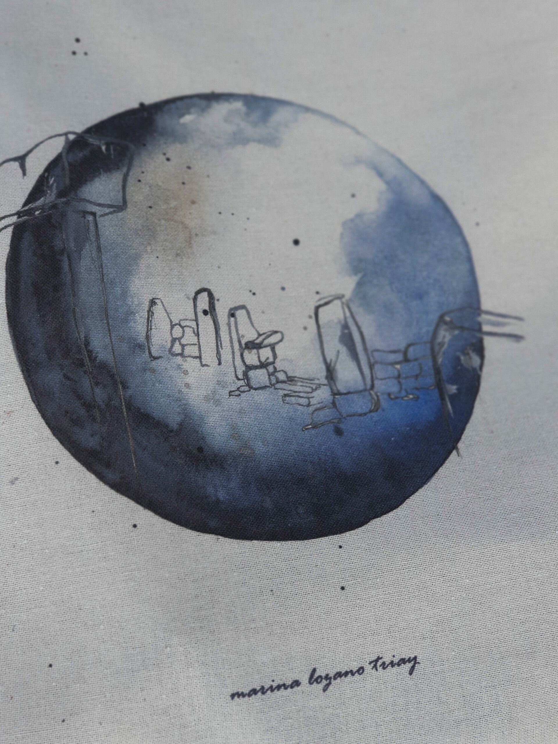 La bolsa de tela "Diseño talayot" está fabricada con algodón 100% y cuenta con dos asas para colgar, lo que la convierte en una opción práctica para el uso diario. Con un gramaje de 180gr, la bolsa presenta una impresión digital diseñada y dibujada previamente en acuarela.